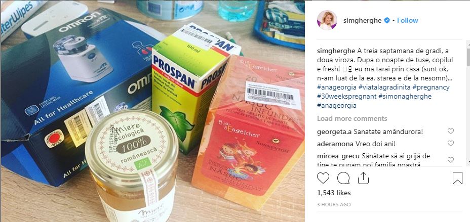 Însărcinată în opt luni, Simona Gherghe nu a putut închide un ochi în urmă cu o seară, după ce fetița ei a contactat o viroză la grădiniță. Acum micuța Ana Georgia se simte mai bine, iar vedeta le-a povestit experiența admiratorilor de pe Facebook.