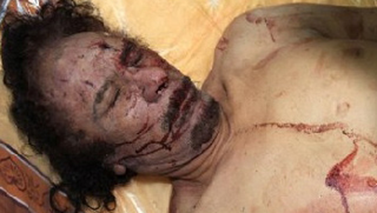 Dupa 42 de ani de domnie, Muammar Gaddafi a ajuns un simplu trofeu.