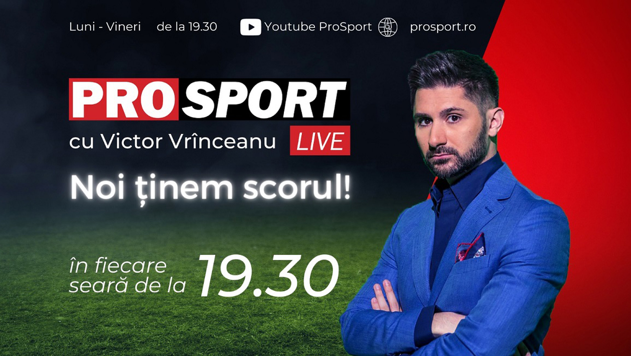 Jurnalistul Victor Vrînceanu va fi în direct pe ProSport.ro și canalul de YouTube ProSport începând cu 15 martie de la ora 19:30 în cadrul emisiunii PROSPORT LIVE. Emisiunea va fi difuzată de luni până vineri și va avea de fiecare data invitați marcanți din lumea sportului românesc alături de care vor fi dezbătute cele mai importante subiecte ale zilei în sport.