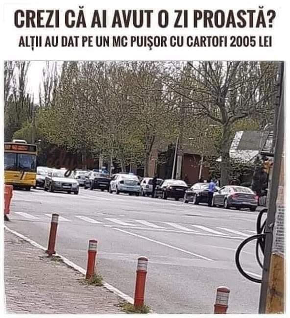 ”Crezi că ai avut o zi proastră? Alții au dat pe un McPuișor cu cartofi 2005 lei”, a scris bărbatul respectiv pe pagina de Facebook a grupului ”Ești din Iași dacă…”