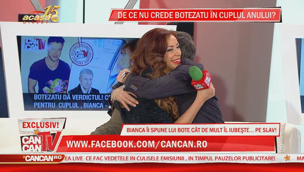 Nu i-ai mai vazut asa de cand s-au despartit! Primul contact fizic intre Bianca si Bote, in direct la CancanTV! S-au luat in brate