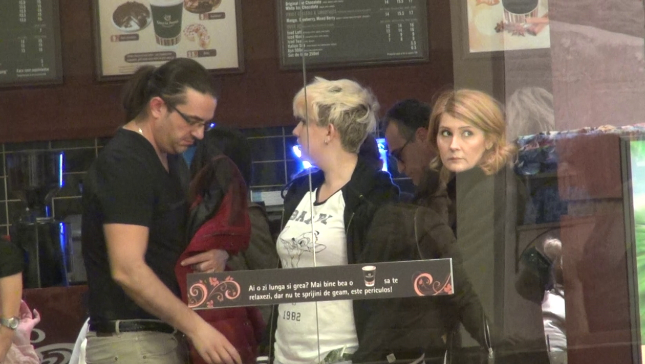 Cu pretextul intalnirii cu o prietena, Sandra si-a scos sotul in vazul lumii. S-au delectat cu o conversatie la o cafea, insa nu au facut risipa de tandreturi. la plecare, Sergiu s-a ocupat sa achite nota de plata, in timp ce sotia si amica s-au infofolit cu grija.