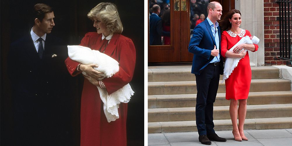 La doar șase ore de la naștere, Kate Middleton și prințul William l-au prezentat lumii întregi pe noul membru al familiei lor. Ducesa de Cambridge radia de fericire și a ales să poarte o rochie roție, aproape identică cu cea purtată de prințesa Diana după nașterea celui de-al doilea copil. Gestul lui Katherine a fost catalogat drept un tribut adus prințesei Diana. Kate Middleton a optat, din nou, la designer-ul ei preferat Jenny Packham.