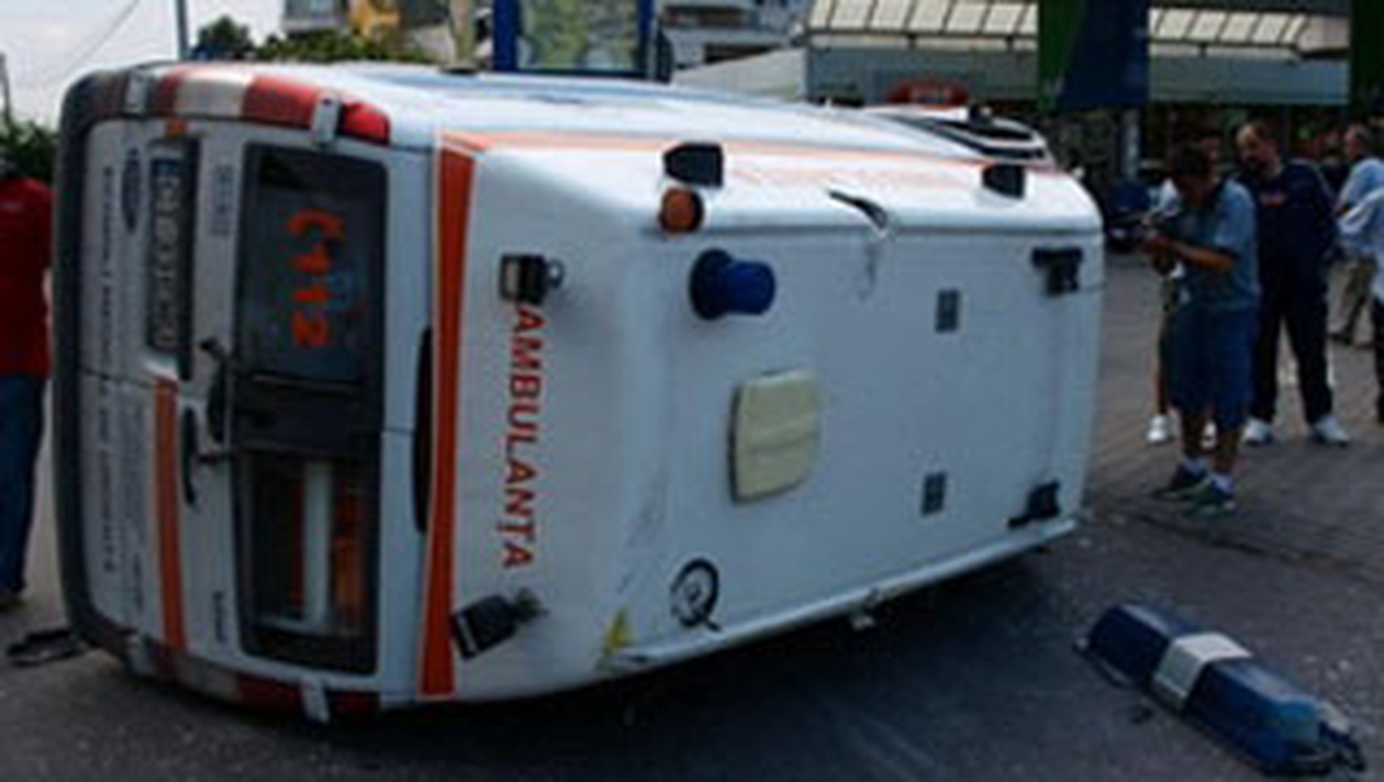 O ambulanta care transporta un pacient a fost implicata intr-un accident pe bulevardul Stefan cel Mare din Bucuresti. Autovehiculul s-a rasturnat si doua persoane au fost ranite usor.