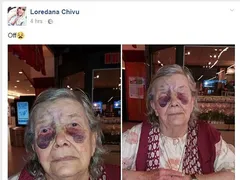UPDATE, ORA 19:37. Printre cei impresionaţi de drama bătrânei s-a aflat şi Loredana Chivu. Vedeta a postat pe contul personal de socializare un colaj cu femeia bătută, iar în dreptul său a scris „Off”. Mai mult, blonda a dat share la ştire şi solicită prietenilor virtuali să sară în ajutorul bătrânei şi să nu rămână nepăsători.