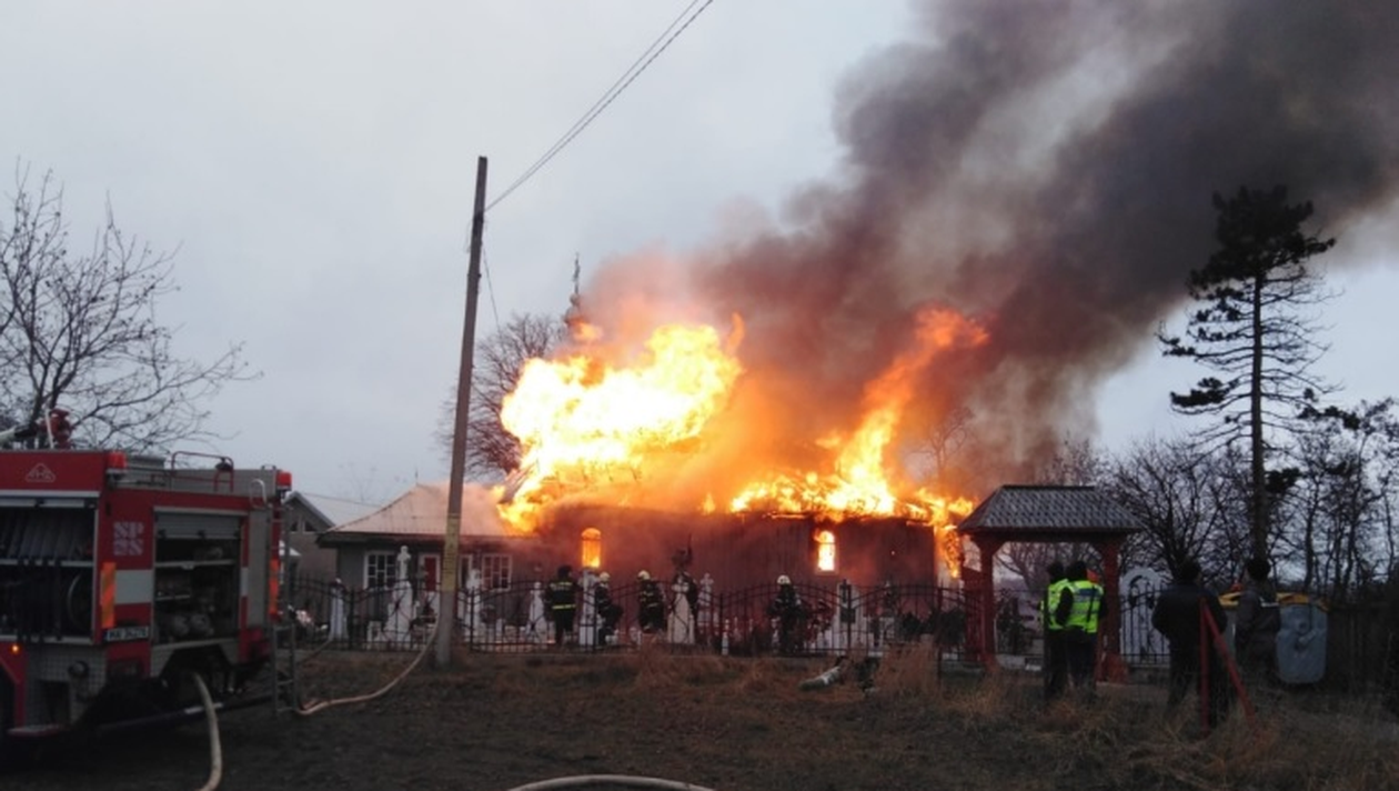 Un localnic a observat că iese fum de sub turlă și a anunțat imediat pompierii. Făcările s-au extins cu repeziciune, însă, și au distrus în totalitate lăcașul de cult.