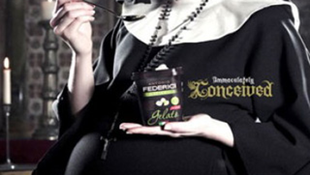 Pentru a-si comercializa cat mai bine produsele, el a apelat la o reclama socanta. Pe panourile publicitare este infatisata o calugarita insarcinata care mananca inghetata, sloganul fiind „Conceputa imaculat”. Reclama a starnit vii controverse in Marea Britanie, fiind considerata ofensatoarea la adresa bisericii. De altfel, reclama a fost retrasa la scurt timp de pe piata de autoritatile locale. Cu toate acestea, Antonio Federici se apara si sustine ca el nu vede nimic ofensator in felul in care a ales sa-si faca publicitate produselor sale. „E o reclama ca oricare alta. Nu vad de ce atata tam-tam din partea autoritatilor. Cred ca lumea ar trebui sa fie mai destupata la minte. Oricum, aceasta reclama, controversata sau nu, mi-a sporit numarul clientilor, ceea ce nu poate decat sa ma bucure”, a spus proprietarul firmei de inghetata.