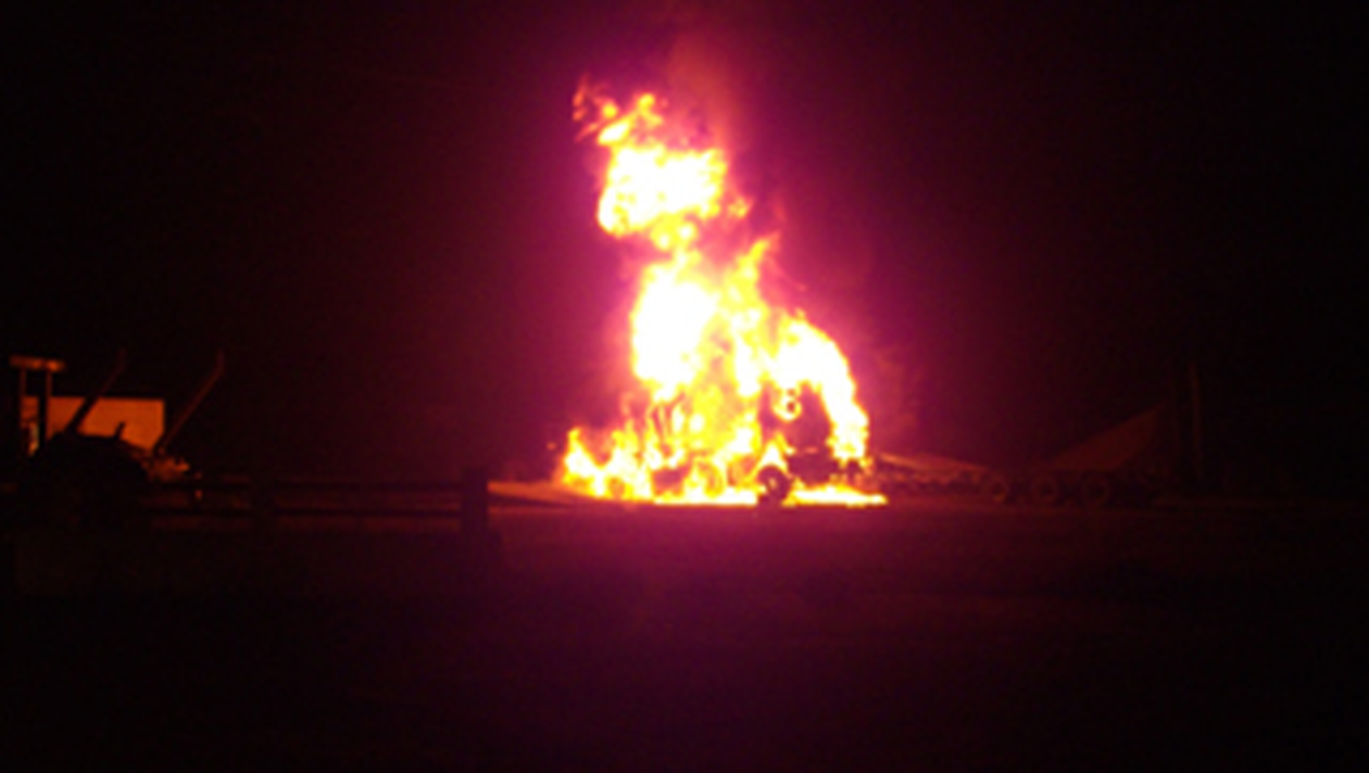 O cisterna cu asfalt a luat foc intr-o parcare de pe DN 1, in judetul Sibiu, flacarile extinzandu-se si la un trailer parcat in apropiere. In timpul operatiunii de stingere, unul dintre rezervoarele de motorina ale instalatiei de incalzire a asfaltului a explodat.