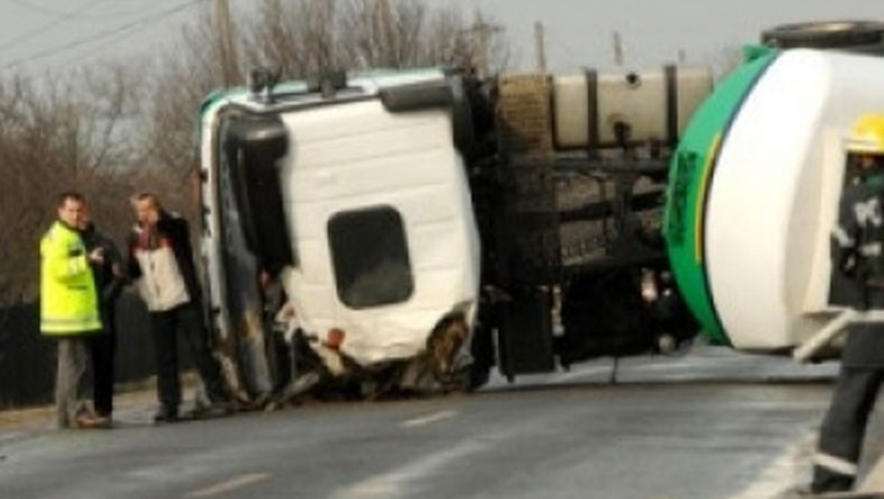 O cisterna care transporta 20 de tone de alcool s-a rasturnat pe carosabil din cauza neatentiei soferului.