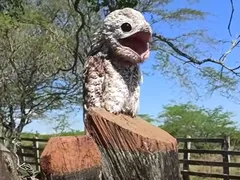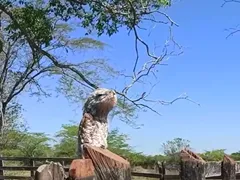 Scenele care au făcut înconjurul lumii s-au petrecut la o fermă din Chibolo, după ce femeia a ieșit să se plimbe cu copiii. Pe clipul de mai jos, se observă că pasărea stă pe gard și pare că se lasă răsfățată de razele soarelui. În momentul în care localnica s-a apropiat mai mult de ea, aceasta a devenit mai precaută. Ulterior, și-a ridicat penele de pe spate, după care a deschis gura, spre uimirea celor prezenți.
