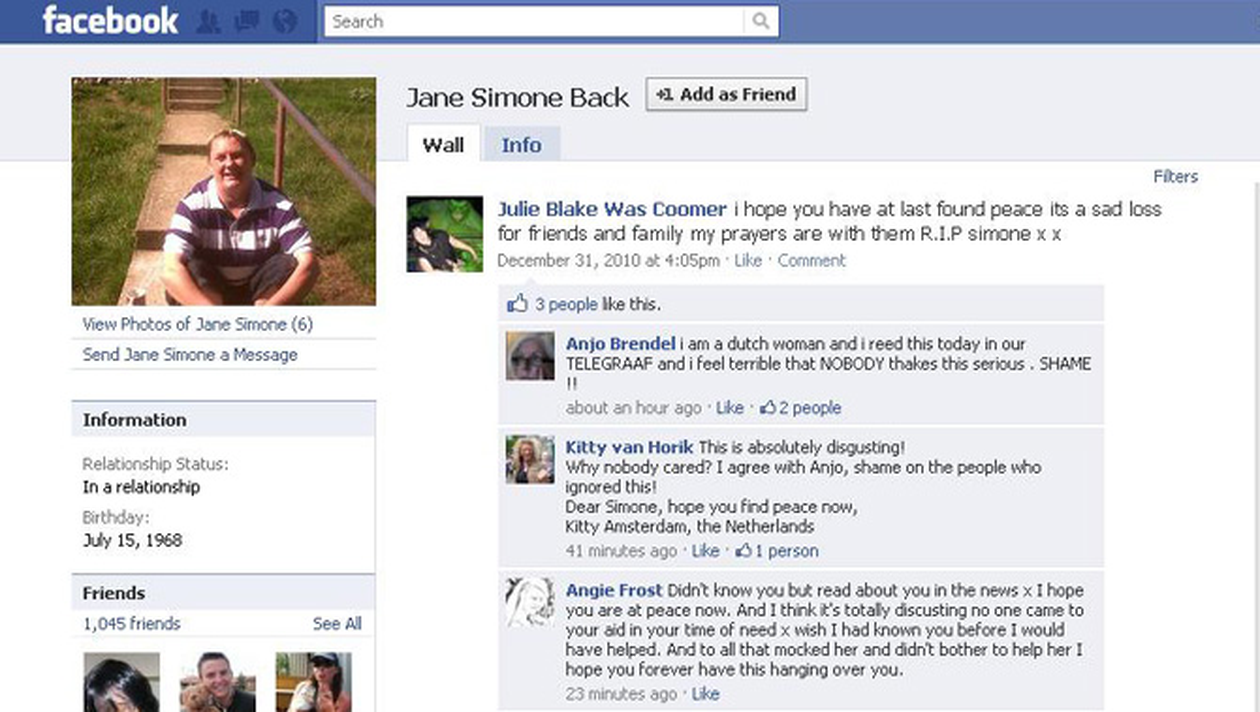 O femeie de 42 de ani, din Marea Britanie, si-a anuntat moartea pe facebook, dar niciunul din cei 1.048 de prieteni online nu au luat in serios mesajul ei disperat.