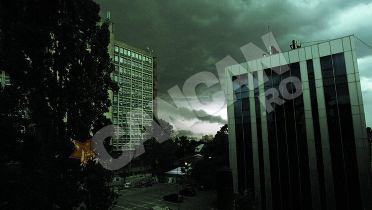 Bucurestiul s-a cufundat brusc in bezna ieri seara, pe la ora 20.00, dupa ce pe cer s-au adunat intai nori plumburii, apoi de-a dreptul negri. O vijelie puternica a maturat intregul oras, punand la pamant copaci grosi si panouri publicitare.
