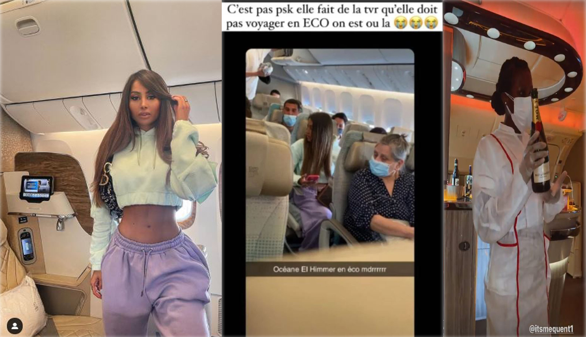 Poza principală a articolului este realizată din imagini publicate în urmă cu doar câteva ore de Océane El Himer pe contul ei de IG Story și sunt un manifest la adresa celor care o consideră mincioană. Prin noile fotografii în care atât ea, cât și prietenii săi fac semne obscene, diva intenționează să le demonstreze că, de fapt, a călătorit la clasa business a aeronavei.