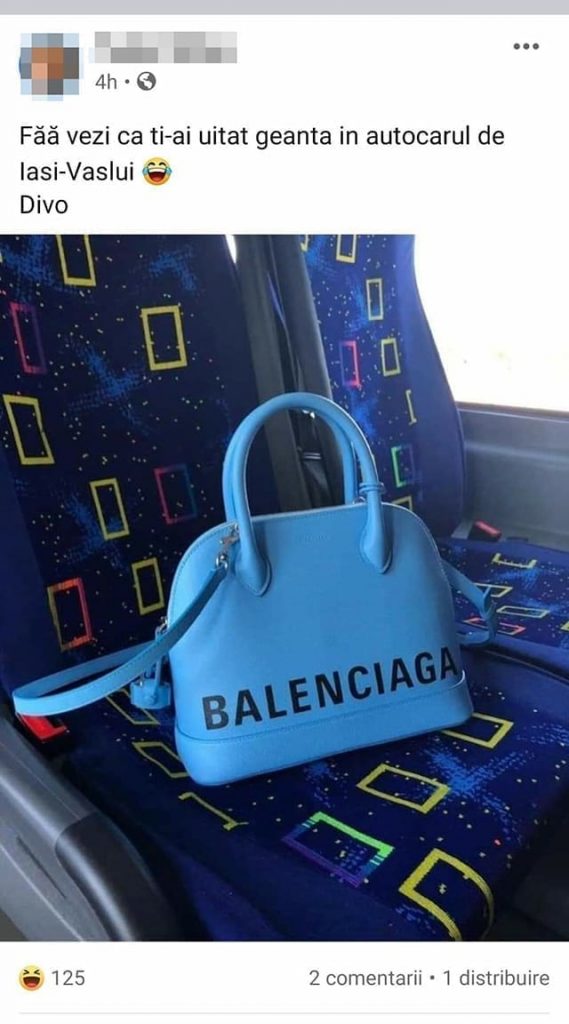 Acasă » Trending » O tânără din Vaslui a comis-o: „Făă, vezi că ți-ai uitat Balenciaga în microbuz”. FOTO