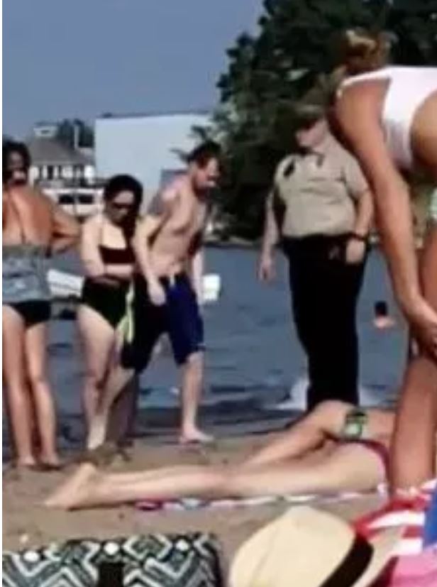 Salvamarul a fost cel care a anunțat poliția. „Am observat cuplul făcând mișcări ciudate în apă. Bodyguardul m-a întrebat: „Vezi ce văd și eu?”. Și-a luat stația și a făcut anunțul și a venit poșițistul să-i scoată din apă. A fost așa jenant”, a declarat martorul care a postat și filmulețul pe pagina sa de Facebook.