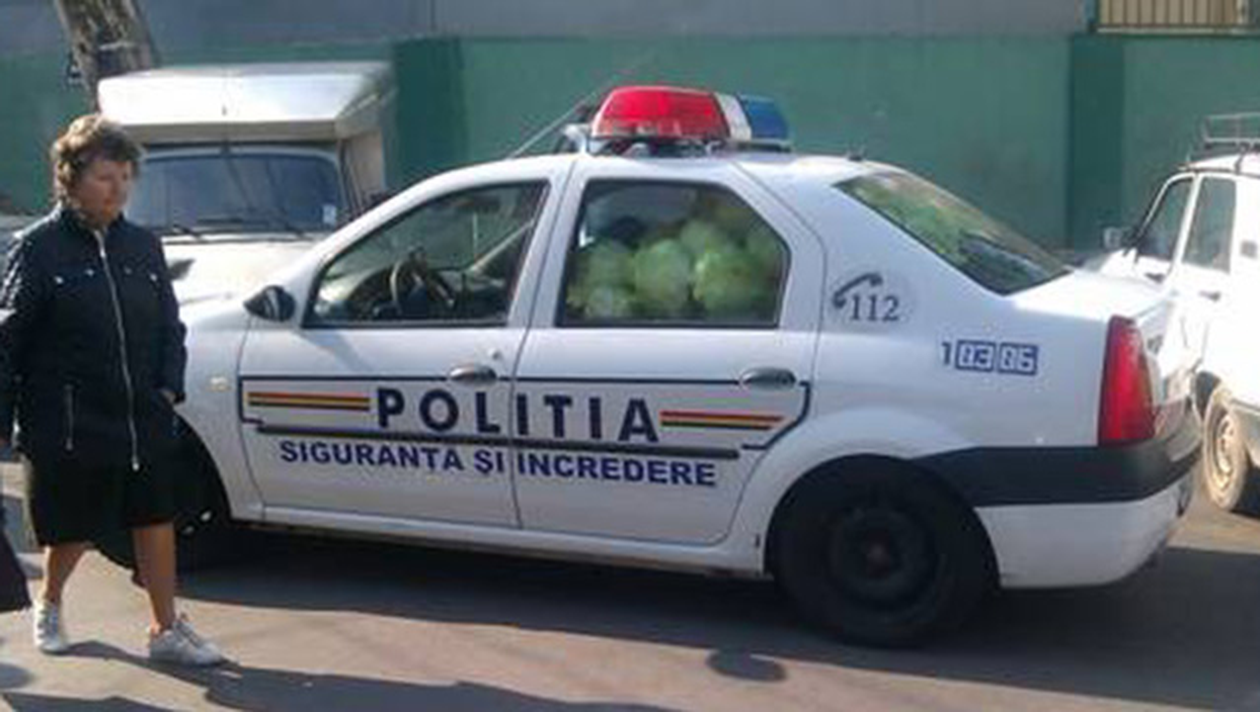 Imagini incredibile au fost surprinse in Capitala. Mai multe masini de politie au fost fotografiate in timp ce cara cateva zeci de kilograme de... varza.