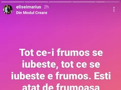Afaceritul a scris pe o imagine încărcată pe Instagram Stories următorul mesaj: “Tot ce-i frumos se iubește, tot ce se iubește e frumos. Ești atât de frumoasă pentru că ești atât de iubită și îți promit că vei fi mereu. Te iubesc, sufletul meu❤️❤️❤️ @oanaromanelisei”.