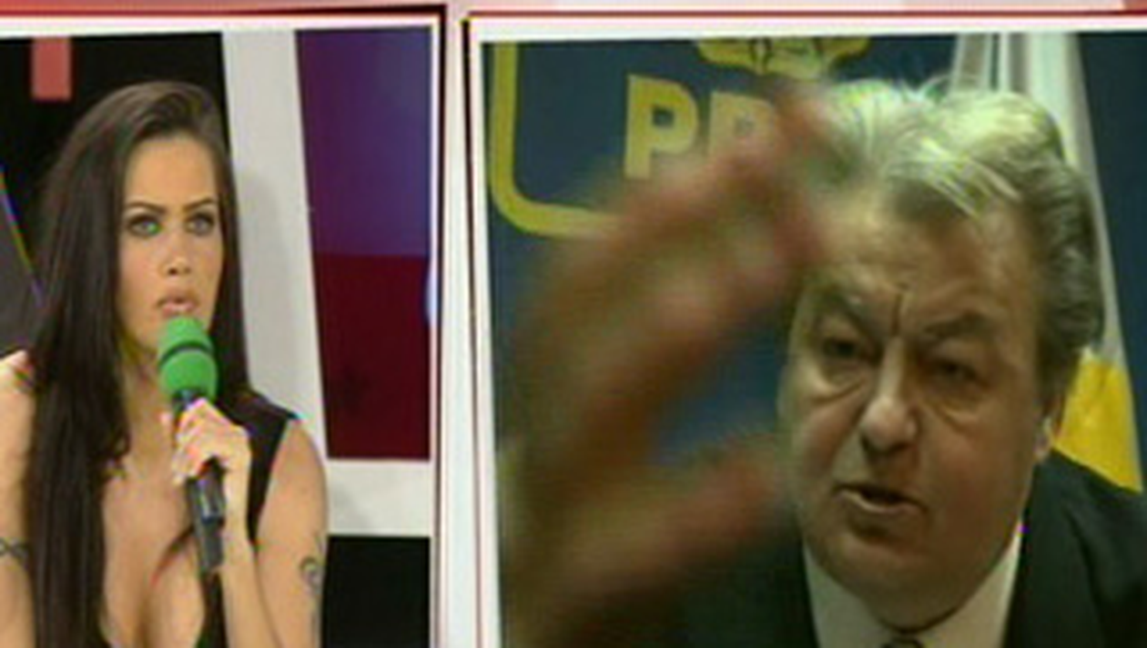 „Sunt subiecte multe si interesante si asta e. Eu nu m-am facut cu ou si cu otet cu el. El face spuma la gura! Azi am intrat in posesia filmuletului integral intre ce s-a petrecut intre mama si Corneliu Vadim Tudor. Nici tiganii nu vorbesc ca el. Mama s-a enervat din cauza ca Vadim minte. Pornind de la porcaria aia ca eu ma prostituam, eu nu as fi dorit sa spun cand am inceput viata sexuala, dar a fost in jurul varstei de 18-19 ani iar prietenul meu a fost Viorel.