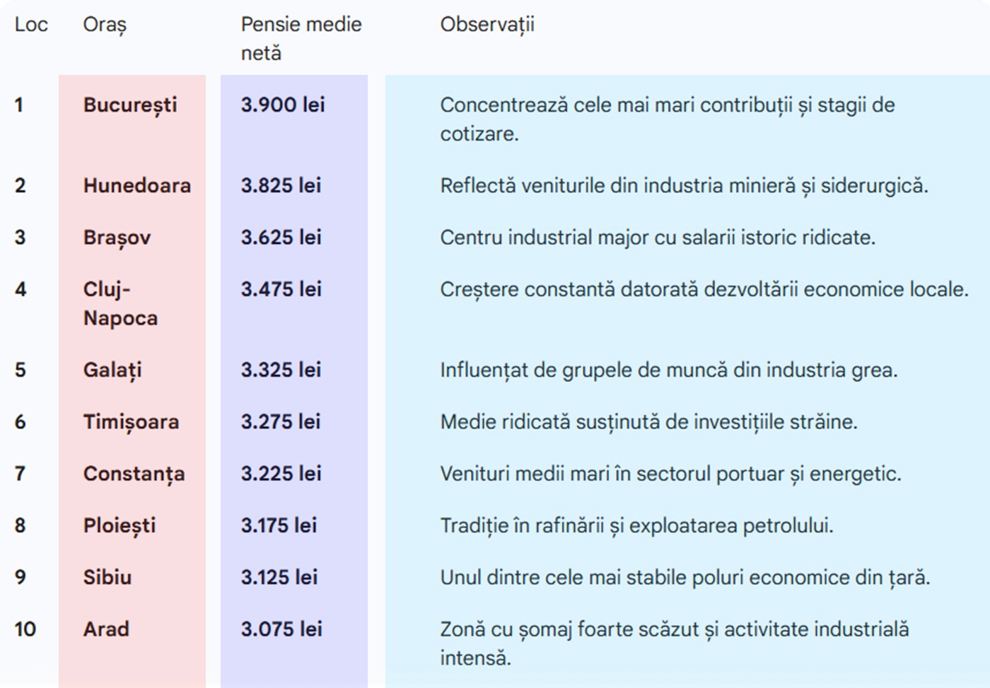 Creșterea spectaculoasă în județe precum Hunedoara sau Galați se datorează faptului că mulți pensionari au lucrat în grupe speciale de muncă, ale căror punctaje au fost valorificate superior în noua lege a pensiilor.