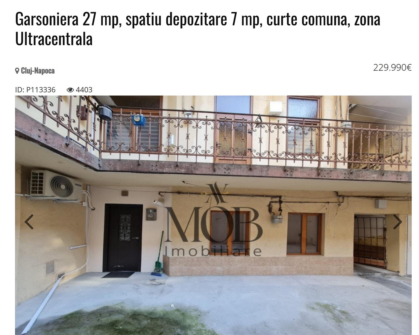 Proprietarul promovează garsoniera ca o investiție ideală pentru regimul hotelier, însă prețul exorbitant ridică întrebări serioase. În acest caz, prețul pe metru pătrat variază între 6.764 de euro și 8.518 de euro, în funcție de suprafața luată în calcul, cifre care sunt greu de justificat chiar și în cel mai scump oraș din România.