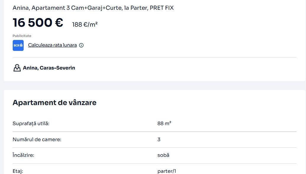 În ciuda prețurilor extrem de ridicate de pe piața imobiliară din România, există un oraș în care poți cumpăra un apartament cu 3 camere pentru doar 16.500 de euro. Locuința are 88 de metri pătrați, garaj și curte.