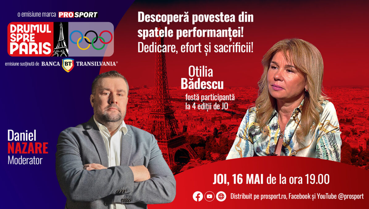 Otilia Bădescu (53 de ani), de patru ori participantă ca jucătoare de tenis de masă la Jocurile Olimpice, este invitata emisiunii Drumul spre Paris, realizată de jurnalistul Daniel Nazare.