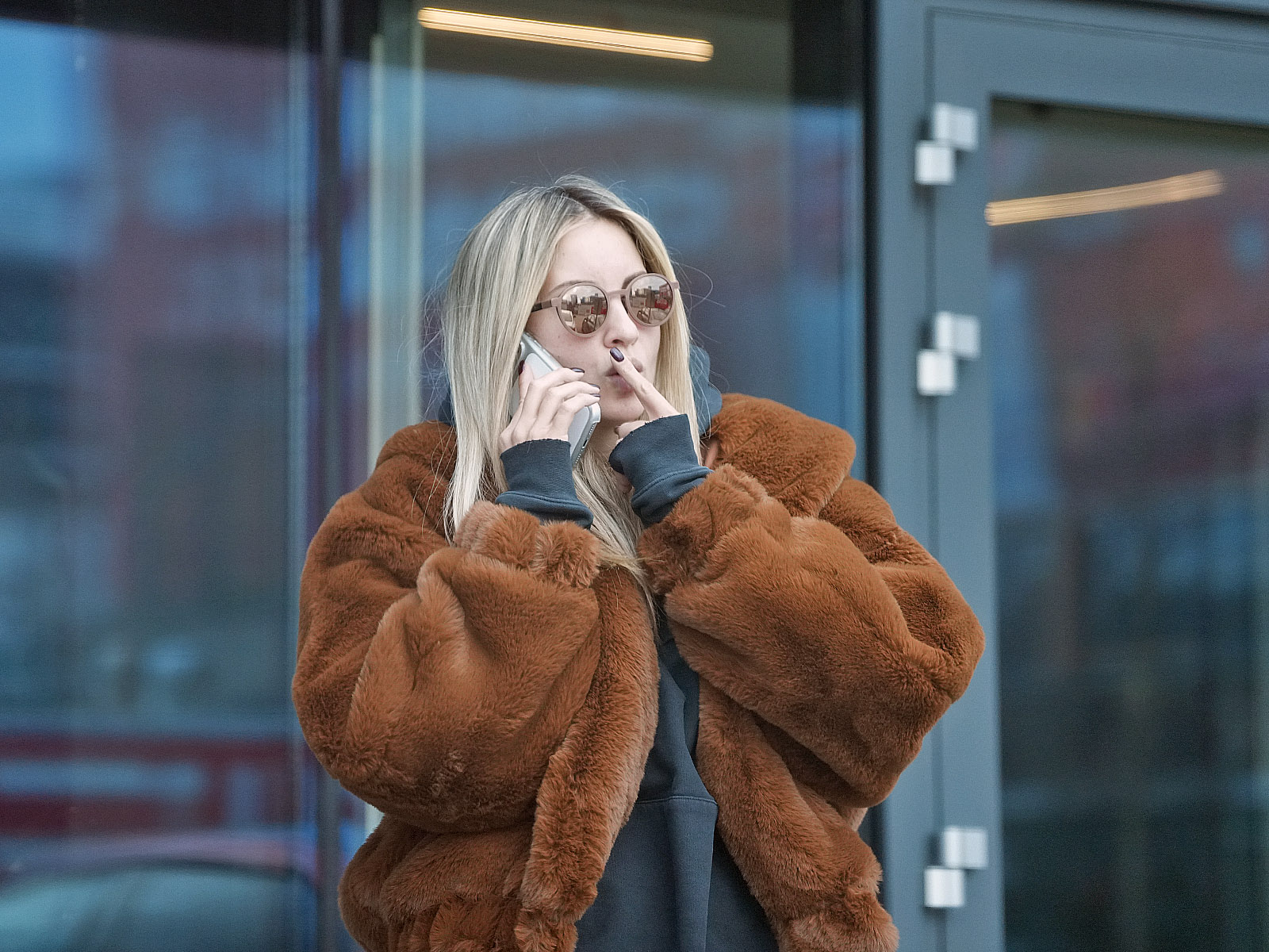 După ce s-a dat jos din Uber, blondina nu s-a grăbit să meargă la căldurică, în casă. A preferat să rămână afară și să poarte o conversație telefonică care părea că nu se mai oprește.