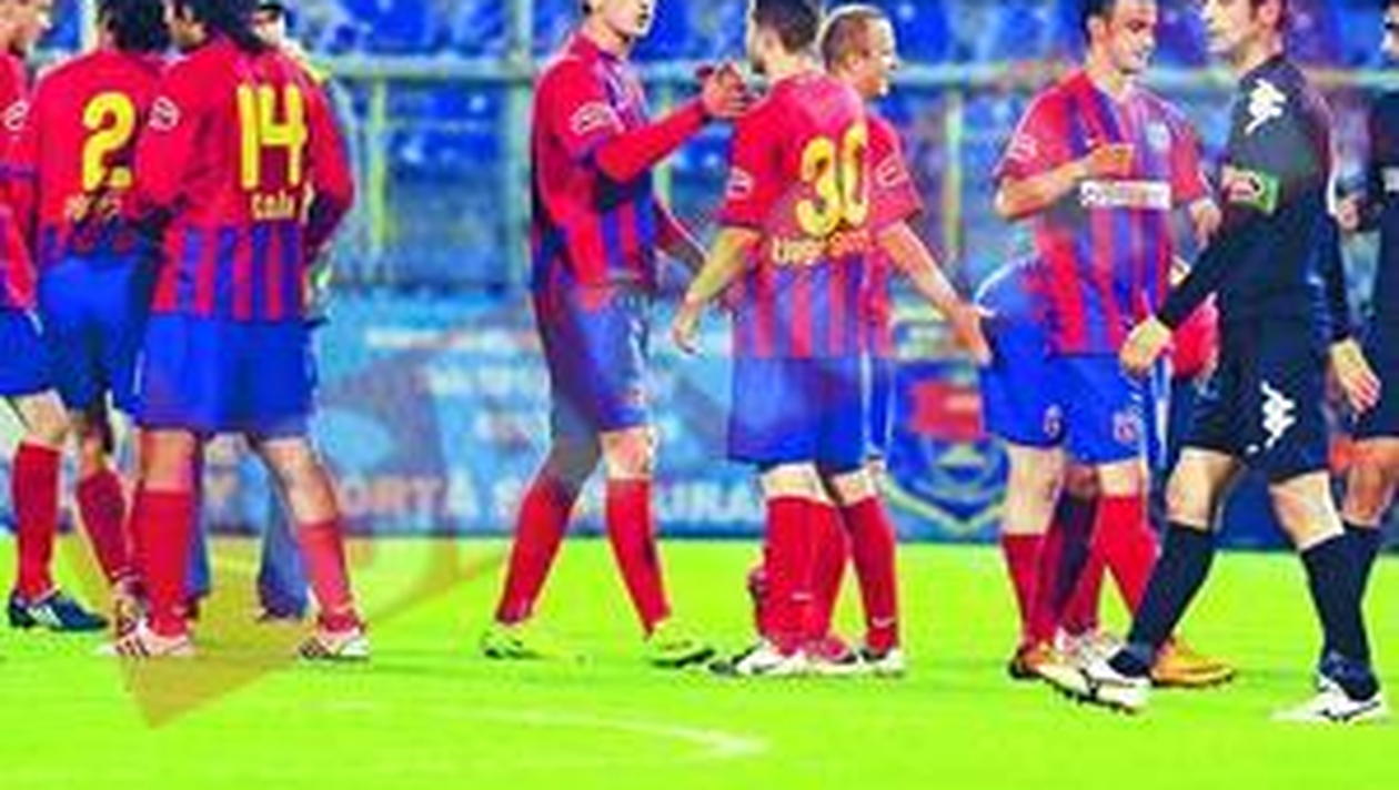 MOMENT. Stelistii se felicita dupa ce au invins blestemata formatie din Otopeni FC Timisoara (2-2), FC Brasov (2-2) si Steaua (0-1) sunt echipele care au inscris decisiv in minutele de prelungiri. Cristian Blanuta „E un blestem cu stadionul asta! Numai in retur am pierdut aici cinci puncte, toate dupa ce am luat goluri in minutele de prelungiri”, au fost vorbele de dupa meciul cu Steaua ale directorului de imagine al gazdelor, Lucian Ionescu. Conducerea clubului din Otopeni s-a saturat de stadionul Astra, cel pe care echipa isi disputa jocurile de pe propriul teren. In urma cu doua saptamani, oficialii au vrut sa cheme un preot la arena, insa au renuntat. Acum acestia au planuit altceva: au de gand sa inlocuiasca poarta dinspre tabela de marcaj, aceea care, spun ei, este blestemata. De altfel, acolo s-au petrecut „nenorocirile” din minutele de prelungiri, cand echipa a fost ori egalata, ori invinsa de catre adversari. Ultimul episod, meciul cu Steaua, de duminica, atunci cand Kapetanos a marcat in minutul al doilea de prelungire.