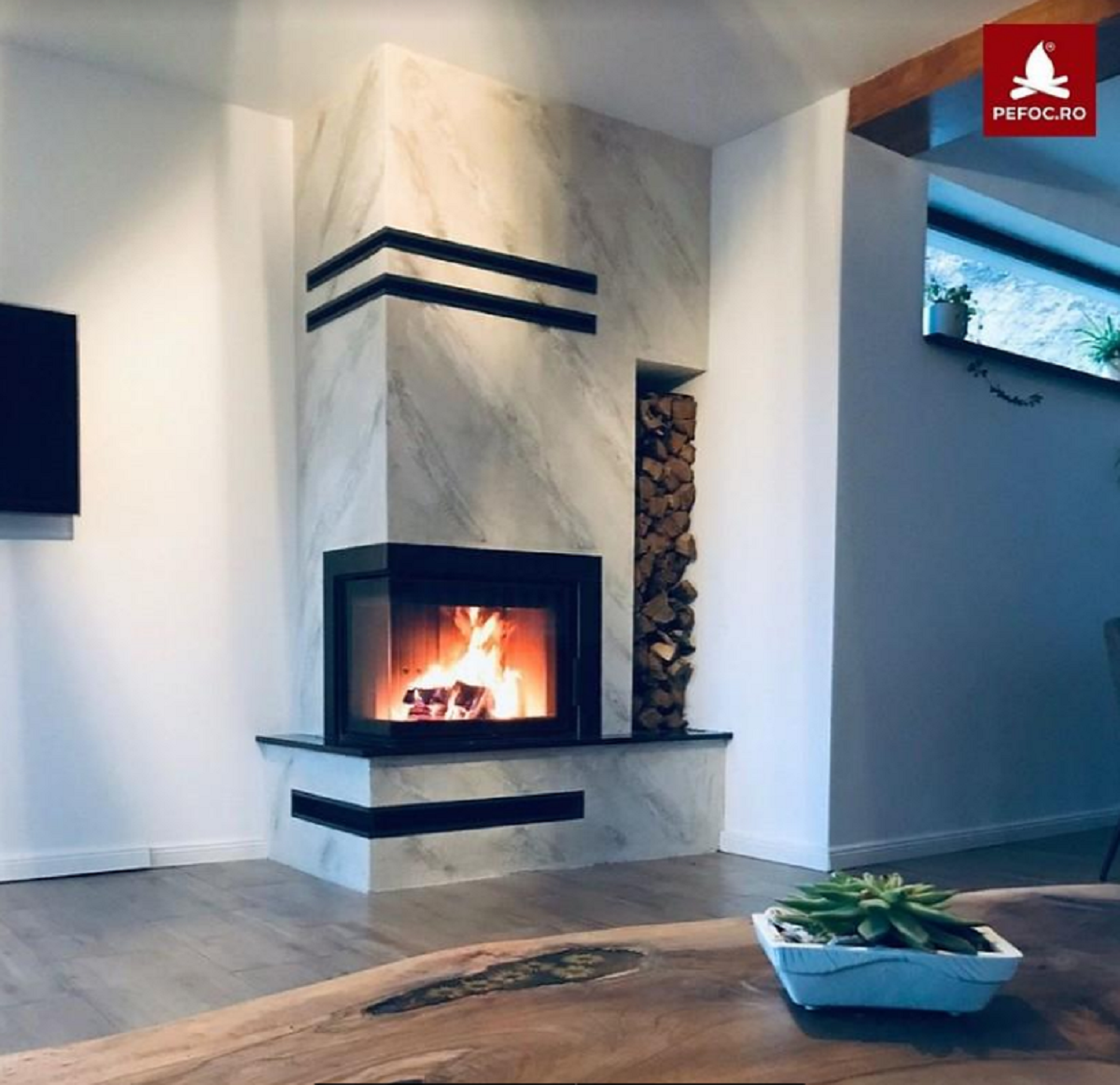 șemineu electric 3D cu telecomandă și panou de control pentru reglarea preferințelor. Acestea devin natural cea mai bună alternativă pentru un plus de căldură cu stil, reușind să împrumute de la șemineele tradiționale pe lemne, sentimentul de intimitate, transformându-ți cu adevărat apartamentul, în “acasă”.