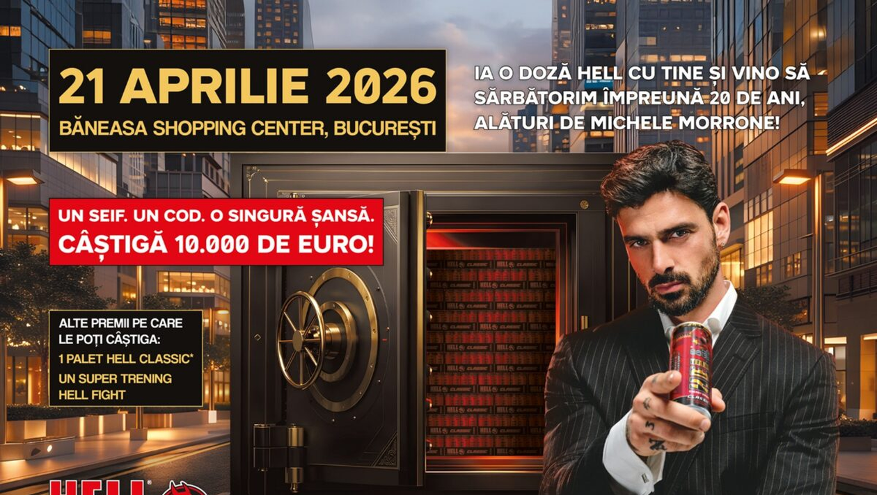 HELL își celebrează cea de-a XX-a aniversare cu un eveniment major, pe 21 aprilie 2026, la Băneasa Shopping City, în București. Evenimentul include o apariție specială, cea a lui Michele Morrone, dar și o ceremonie de premiere – HELL Perfect Store Awards – dedicată magazinelor partenere din țară și o provocare captivantă, cu un seif și premii de 10.000 de euro, un palet de băuturi HELL și un trening premium HELL Fight.