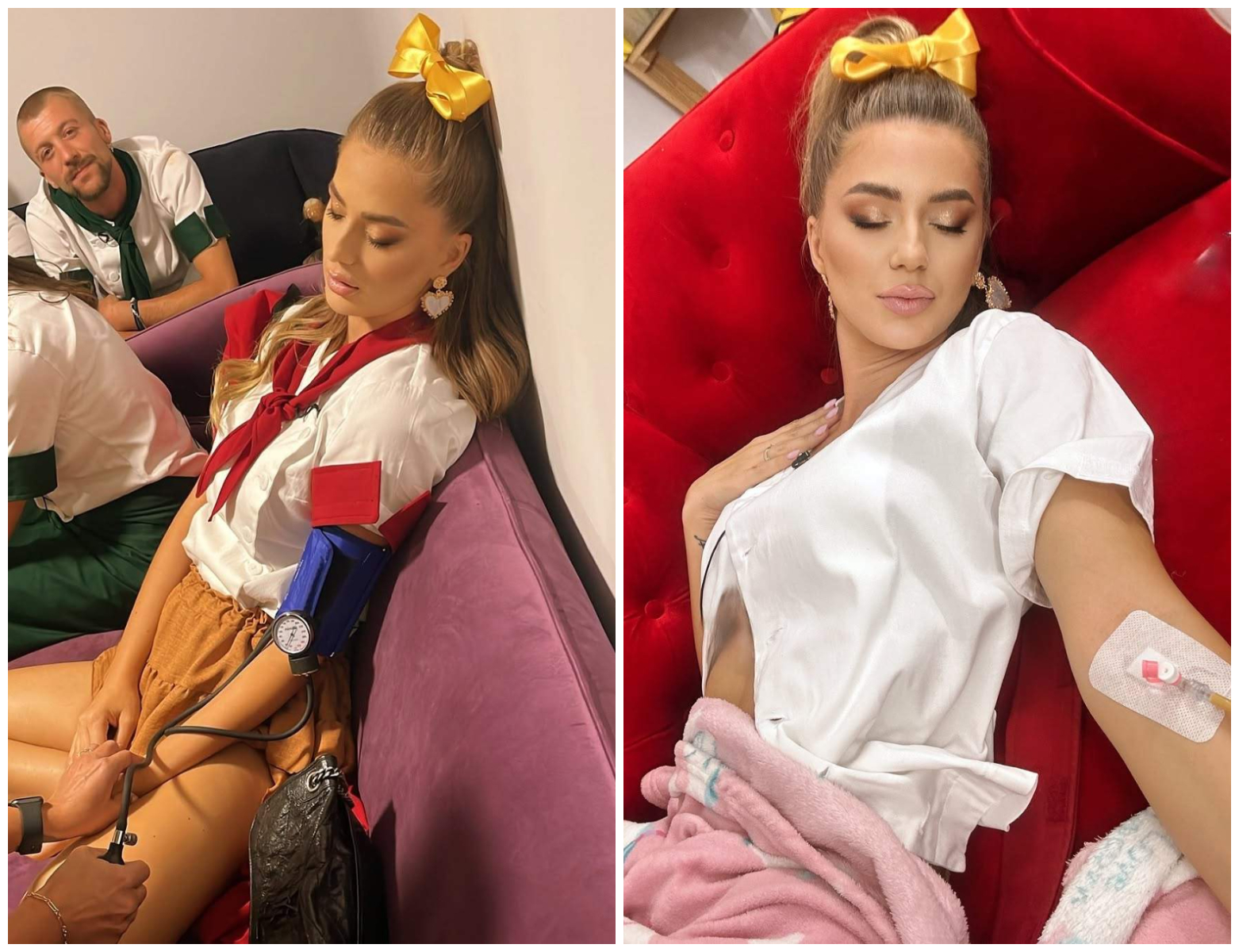 „Astăzi este o zi grea pentru mine la Chefi la Cuțite. Am nevoie de energie bună să-mi revin. Ne vedem de la 20.30. Mai sunt și zile din astea, suntem oameni”, a scris Amme de la Chefi la Cuțite, pe Instagram, în dreptul fotografiilor în care apare cu perfuzia în mână.