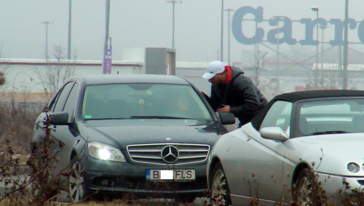 Scena a avut loc marti, chiar in parcarea de la un mall din nordul Bucurestiului. La inceput barbatul a incercat sa apeleze la mila femeii si s-a asezat in genunchi langa masina rugand-o sa-i vorbeasca.