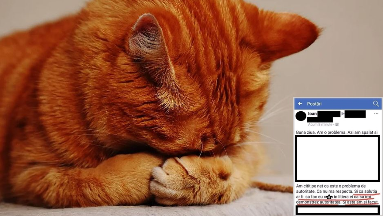Am citit pe net că este o problemă de autoritate: că nu mă respectă. Și că soluția ar fi să fac eu c@#@ în litiera ei ca să îmi demonstrez autoritatea. Și asta am și făcut. Nu a funcționat. Încă doarme pe ele și nu știu ce să fac”, a scris Ioan, un internaut, pe contul său de Facebook.