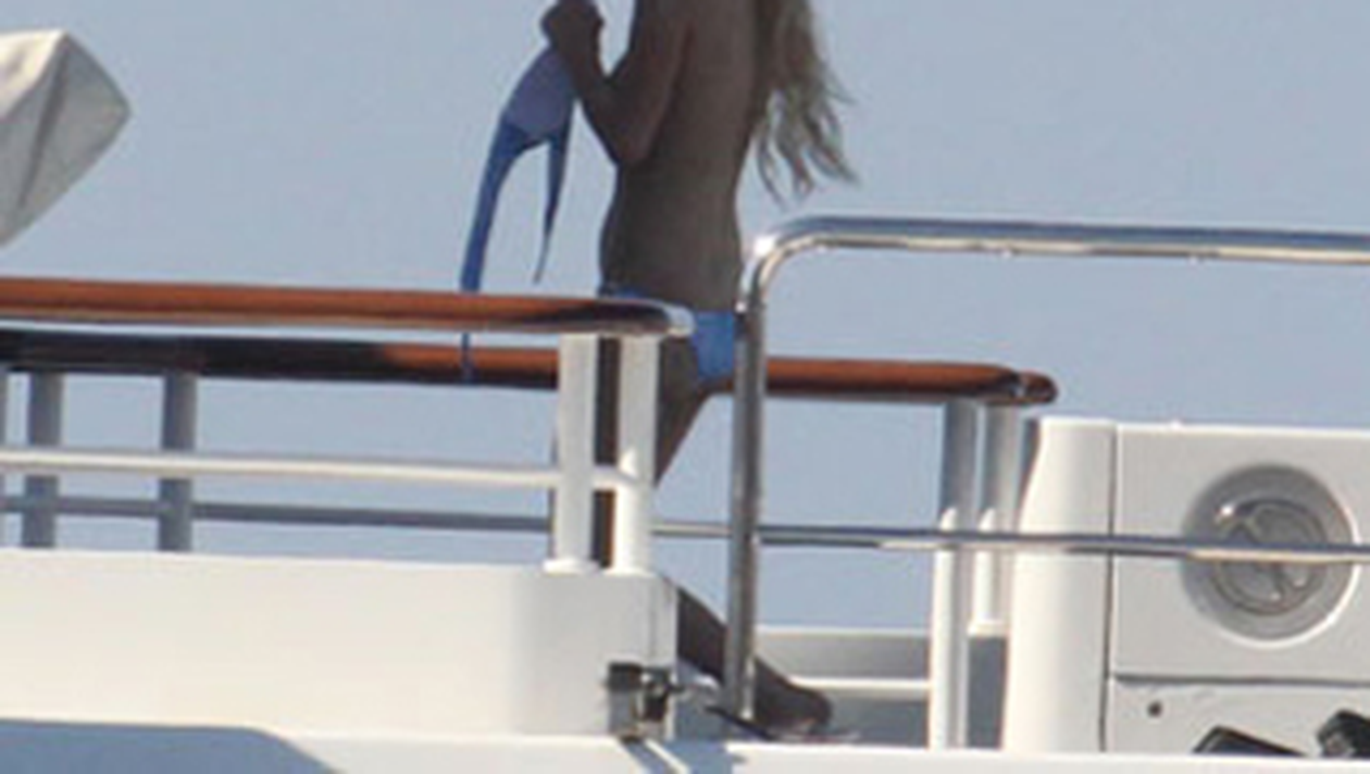 Aflata in Italia, la soare, blonda a facut plaja topless si s-a plimbat cu skijetul in apele de langa insula Sardinia fara sa o deranjeze ca este in sanii goi.