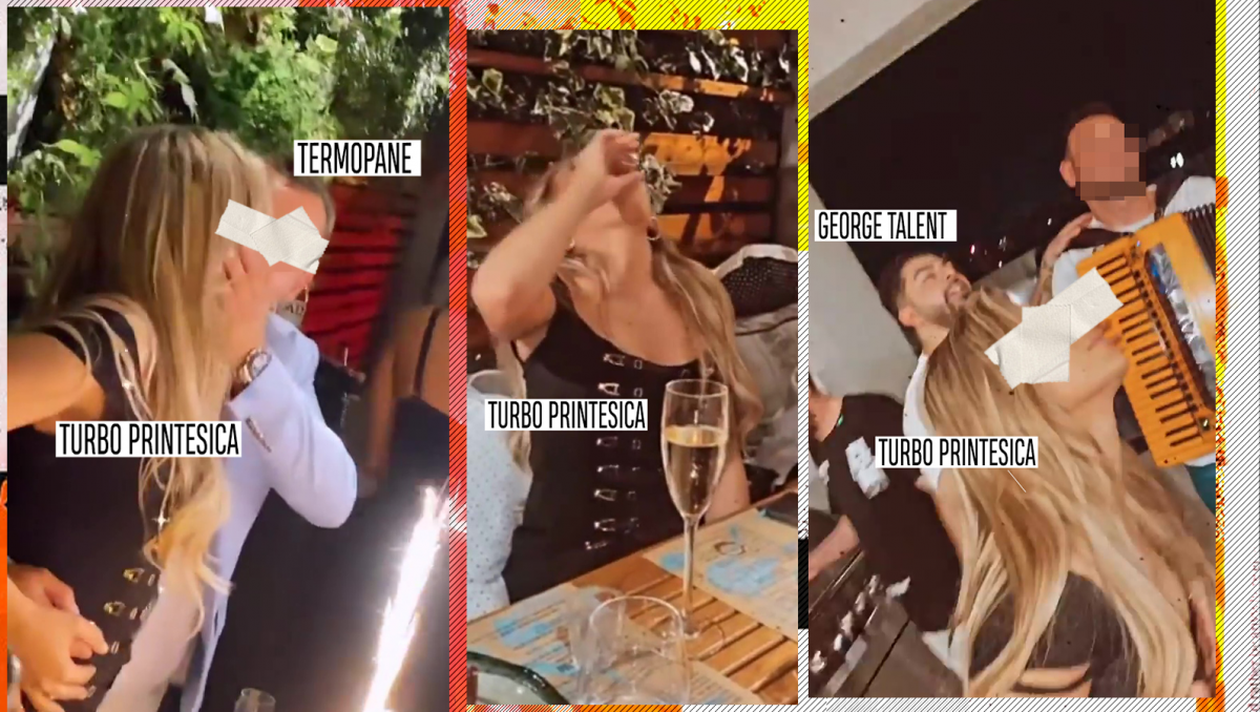 La petrecere, “Turbo Prințesica” și-a invitat prietenii și a rezultat un show de zile mari pe care, cu siguranță, cei prezenți nu-l vor uita prea curând. Blondina s-a sărutat cu foc cu iubitul ei, zis “Termopane” și, în ton cu lumea din local, a consumat băuturi fine și preparate alese. Șampania a fost, însă, la putere, cei prezenți sorbind pahar după pahar.