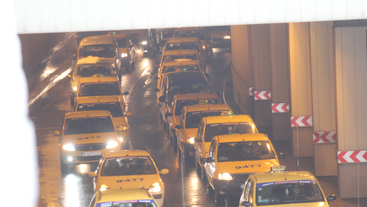 Coloana. Taxiurile din cortegiu se intindeau pe sute de metri