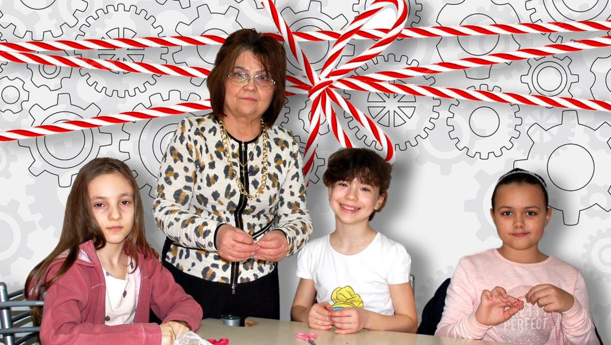 Activitatea în fabrica de mărțișoare este supravegheată de învățătoarea Georgica Ezeanu, transformată într-un fel de inginer-șef responsabil cu pregătirea în cele mai mici detalii a simbolurilor primăverii. Ea oferă fiecăruia dintre meșterii din subordine materialele de lucru necesare: bucăți de carton colorat, lipici, foarfece, ațe, bile de lemn și imagini pentru decupaj. (VEZI ȘI: SE ÎNTÂMPLĂ ÎNTR-UN LABORATOR DIN SLATINA. MATERNITATEA DE ROBOŢI)