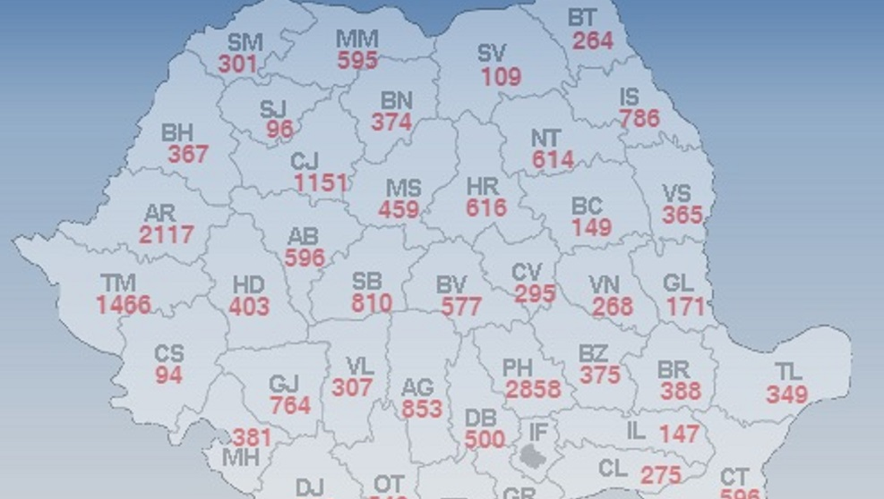 Situaţia locurilor de muncă vacante, în fiecare judeţ: Bucureşti – 5.921, Prahova – 2.858, Arad – 2.117, Timiş – 1.466, Cluj – 1.151, Argeş – 853, Dolj – 820, Sibiu – 810, Iaşi – 786, Gorj – 764, Harghita – 616, Neamţ – 614, Constanţa – 596, Alba – 596, Maramureș – 595, Braşov – 577, Olt – 542, Ilfov – 530, Dâmboviţa – 500, Mureş – 459, Hunedoara – 403, Brăila – 388, Mehedinţi – 381, Buzău – 375, Bistriţa-Năsăud – 374, Bihor – 367, Vaslui – 365, Tulcea – 349, Teleorman – 341, Vâlcea – 307, Satu Mare – 301, Covasna – 295, Călăraşi – 275, Vrancea – 268, Botoşani – 264, Galaţi – 171, Bacău – 149, Ialomiţa – 147, Suceava – 109, Sălaj – 96, Giurgiu – 96, Caraş-Severin – 94.