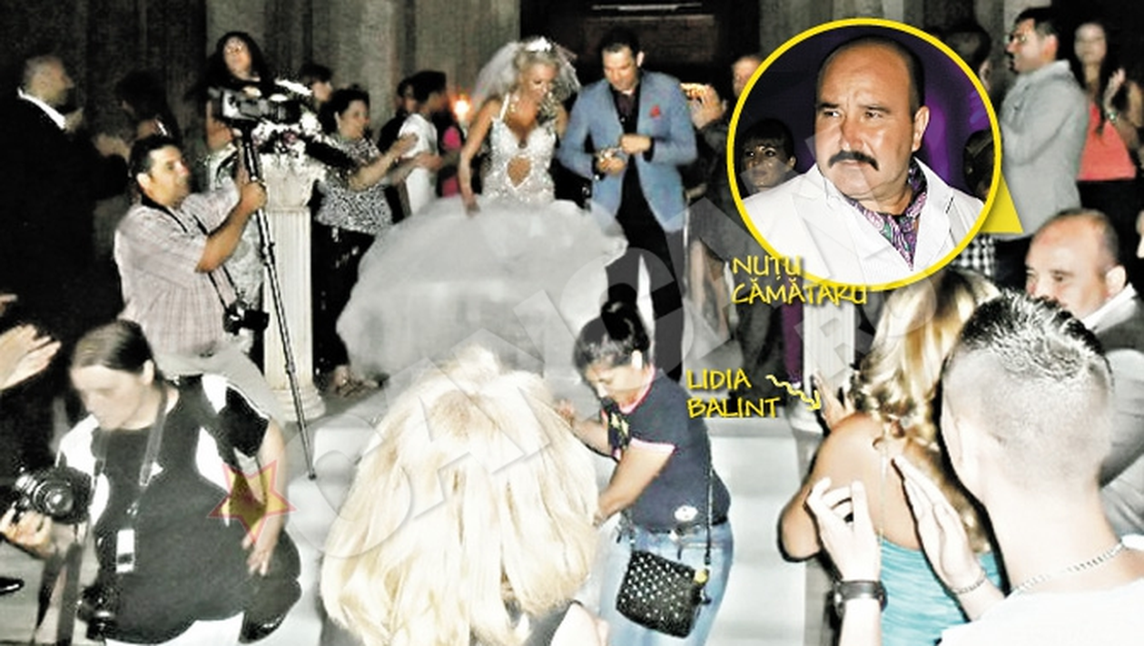 Trei zile si trei nopti a durat petrecerea organizata de Nutu Camataru in cinstea casatoriei fiicei lui, Gabriela, cu tanarul Marius, care este fratele nevestei lui Marian Aliuta. Ca un amanunt interesant, sotii Aliuta au fost si nasii tinerilor insuratei. Pentru acest moment, celebrul Ion Balint a ridicat special pe hipodromul sau din spatele vilei din Ferentari un cort imens. Initial, constructia era prevazuta pentru a gazdui circa o mie de persoane, dar la „main event”-ul care a avut loc in noaptea de sambata spre duminica au fost peste 1.500 de persoane. Petrecerea a debutat inca de vineri seara, in curtea casei socrului mic, acolo unde a fost instalata o fantana arteziana. De partea artistica a nuntii s-a ocupat Dan Bursuc, cel care a dormit in saptamana premergatoare petrecerii acasa la Nutu, pentru a se asigura ca sonorizarea si programul trupelor vor fi impecabile. In afara unor manelisti cunoscuti, in frunte cu Florin Salam, invitatii s-au delectat cu cele mai cunoscute piese ale lui Smiley si cu glumele inspirate ale lui CRBL, care a fost maestru de ceremonii. De asemenea, Andreea Teodorova, bulgaroaica lui Costi Ionita, a sustinut un recital muzical. Tortul miresei a avut peste cinci metri inaltime si a costat circa 7.000 de euro, iar petrecerea propriu-zisa a debutat abia dupa miezul noptii. Pana sa se permita accesul in cort, invitatii au socializat si au baut un pahar de sampanie scumpa intr-un lounge special amenajat la intrare, pe acordurile unui pian de culoare roz si a unei orchestre simfonice. Numai instalatia electrica pentru acest lounge, care a mai beneficiat si de un imens bar construit din gheata, a costat circa 30.000 de euro. In momentul in care cortul s-a deschis, invitatii au patruns nerabdatori pentru a-si ocupa locul la mesele pe care nu stateau scrise nume de persoane, ci regiuni din Romania, cum ar fi Craiova sau Constanta. A schimbat trei trene la rochia de mireasa! Un alt element spectaculos a fost rochia miresei, lucrata in margele scumpe si cristale Swarovski aduse special din Africa. Pe spatele tinutei era batut in pietre pretioase un paun, iar cozile acestuia plecau din trena rochiei pana la pamant. Pe toata durata serii, Gabriela a purtat aceeasi tinuta, dar a schimbat de trei ori trena! Dupa ce a fost machiata si coafata aproape patru ore de o trupa de stilisti profesionisti, mireasa a iesit din casa, iar in aer au fost eliberati zeci de fluturi si porumbei albi.