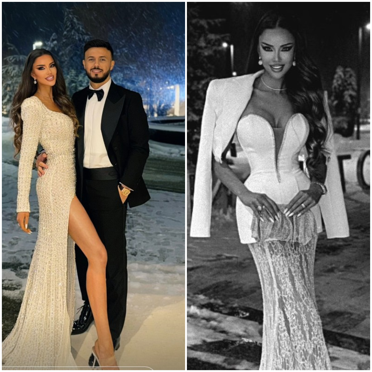 Astfel, la final a avut o apariție de zile mari. Blondina a ales să poarte două ținute la eveniment, una mai spectaculoasă ca alta. Inițial, aceasta a purtat o rochie lungă, albă, cu un decolteu generos, fără bretele și dantelă în partea de jos. Ținuta a fost completată de un sacou purtat pe umeri, tot alb.