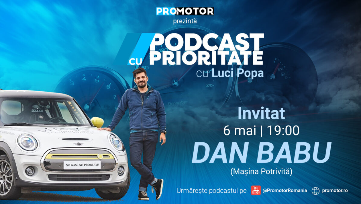 Dan Babu de la Mașina Potrivită este invitatul ediției cu numărul 7 a „Podcast cu prioritate” by ProMotor. Emisiunea va fi difuzată sâmbătă, 6 mai, ora 19:00, pe canalul de YouTube ProMotor România și pe site-ul www.promotor.ro.