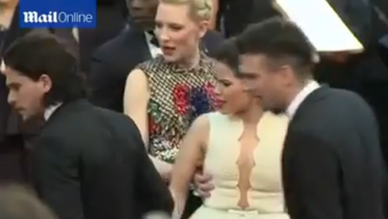 Nu se ştie deocamdată cum a reuşit reporterul ucrainean să treacă de cordonul de securitate şi să ajungă pe covorul roşu.