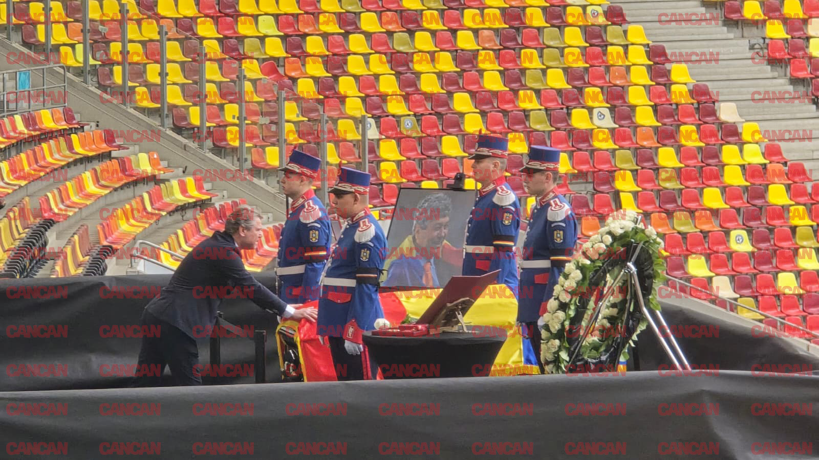 UPDATE 12.20 – Ministrul Afacerilor Interne, Cătălin Predoiu, a venit să-i aducă un ultim omagiu celui care a scris istorie în lumea fotbalului.