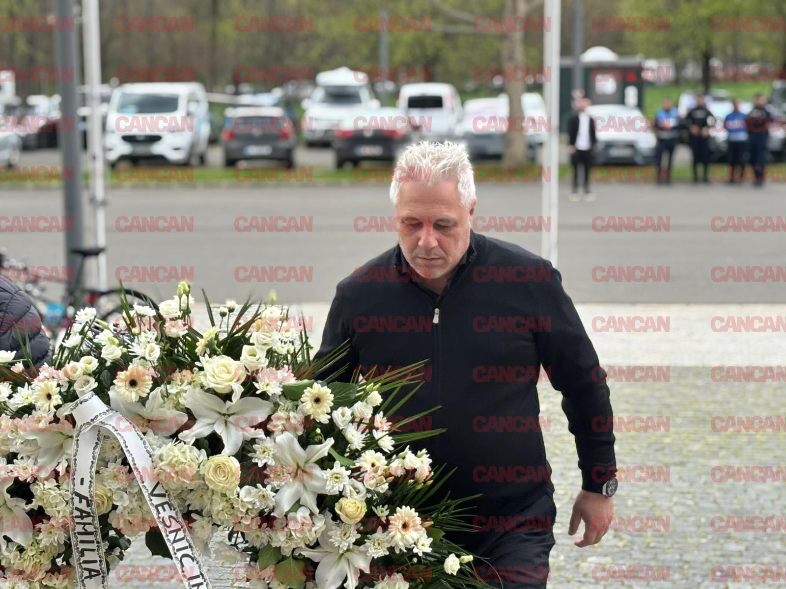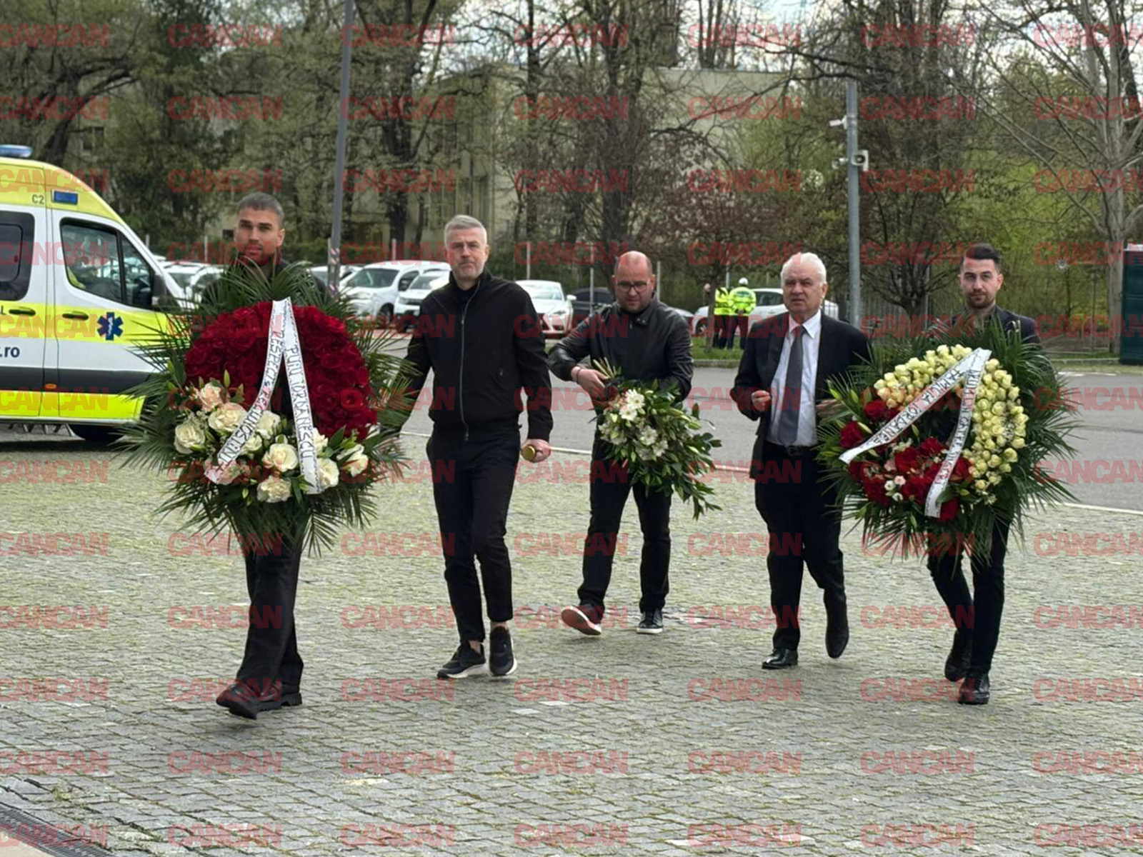 UPDATE 11.40 – Marius Lăcătuș, vizibil afectat, a venit cu o coroană funerară la căpătâiul regretatului antrenor. L-au însoțit și Adrian Bumbescu și Ștefan Iovan