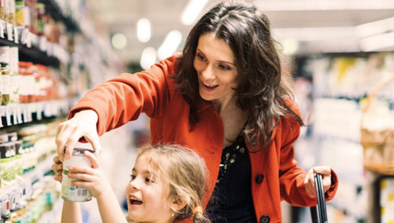 M-am întors, teleghidat, spre standul cu dulciuri. Punguța cu bomboanele, pe care o ține copila în mână, costă 1,50 lei. Am înghesuit dulciuri în coș și, inevitabil, în drum spre casa de marcat, am trecut pe lângă standul de carne. Femeia respectivă și copila, care se zgâia în geamul de prezentare a produselor.