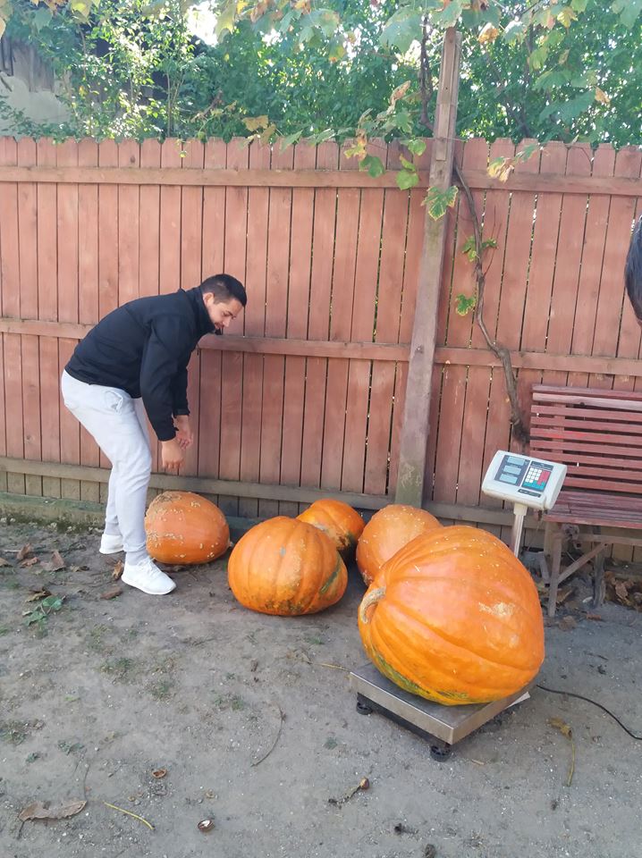 „Am făcut un proiect european şi am vrut să accesez nişte bani şi apucându-mă de dovleţi, ca sa zic aşa, să pun, am făcut două hectare într-o comună apropiată, am zis ia să fac, mă, să pun şi dovleac din acesta gigant în grădină. Cum l-am pus, aşa de la Dumnezeu a dat. Nu l-am tratat, nu l-am dat cu azot, nu l-am prășit, când m-am dus, l-am găsit atâta în grădină. Probabil că dacă mă ocupam, vă daţi seama că îl făceam de 200 de kilograme”, spune Răzvan Cobrescu, proprietarul plantaţiei de dovleci. (AFLĂ DE AICI: CE ASCUND TUNELURILE SECRETE DE SUB FOCŞANI)