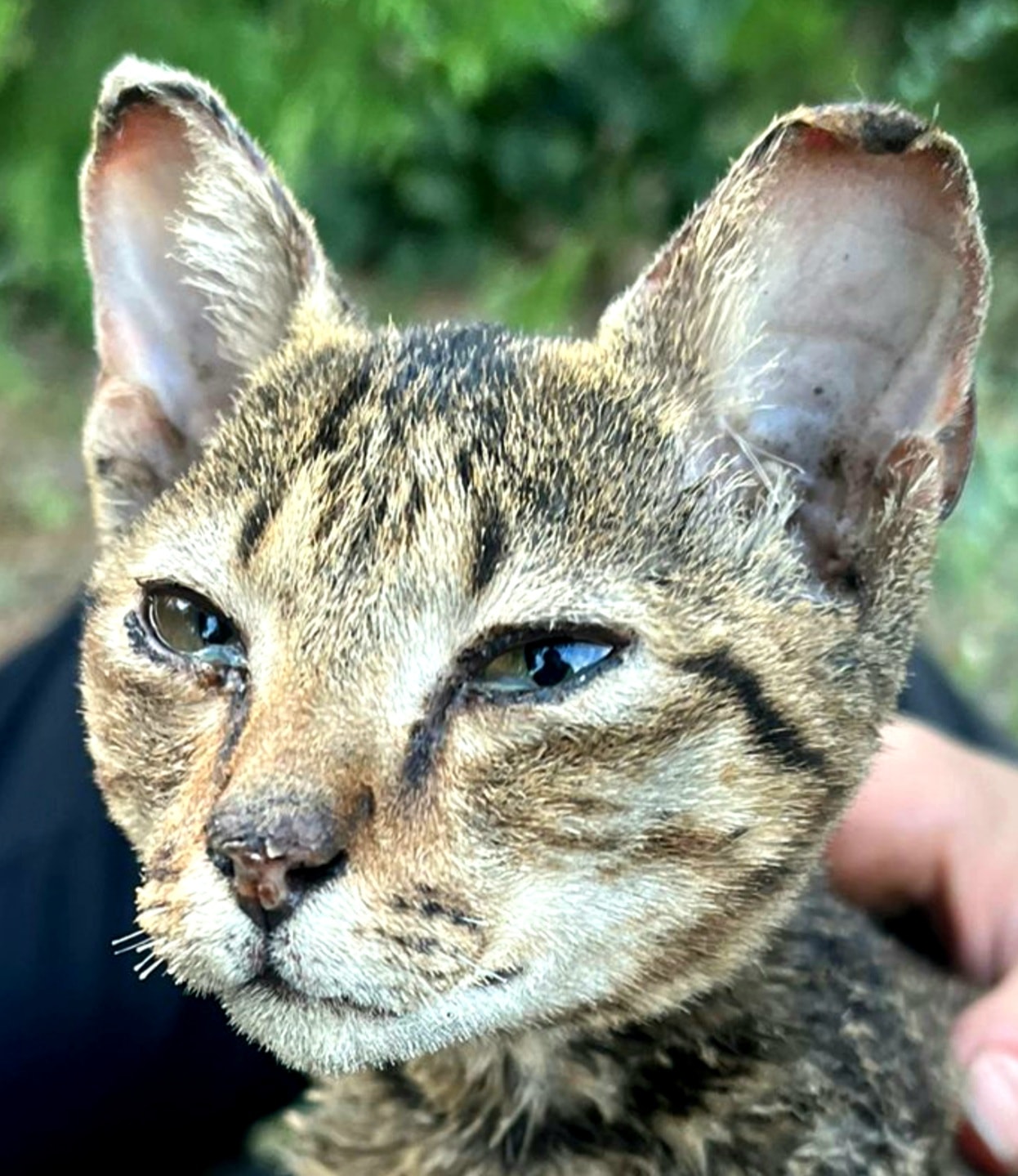 Ce nu se prea vede în această fotografie, e atitudinea. Deși a venit către oameni în starea descrisă mai sus, nu s-a plâns deloc, nu a mieunat, nu a zis nimic, n-a cerut nimic. Te privea, parcă, cu înțelepciunea unui maestru spiritual în vârstă de 98 de ani, care la viața lui le-a văzut pe toate și care pare să fie împăcat cu ideea că e posibil să nu mai aibă foarte mult timp la dispoziție. Probabil pare nebunie, dar efectiv asta am simțit eu când se uita la mine.