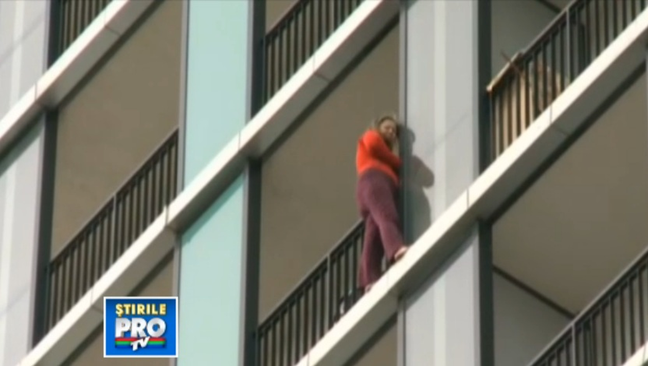 Doar ca femeia, despre care vecinii spun ca este pictorita sic a are o relatie cu un cetatean olandez octogenar, a traversat mai multe balcoane si le-a dat emotii tuturor locatarilor care au asistat neputinciosi, pana cand patru politisti au reusit s-o convinga sa intre in casa.