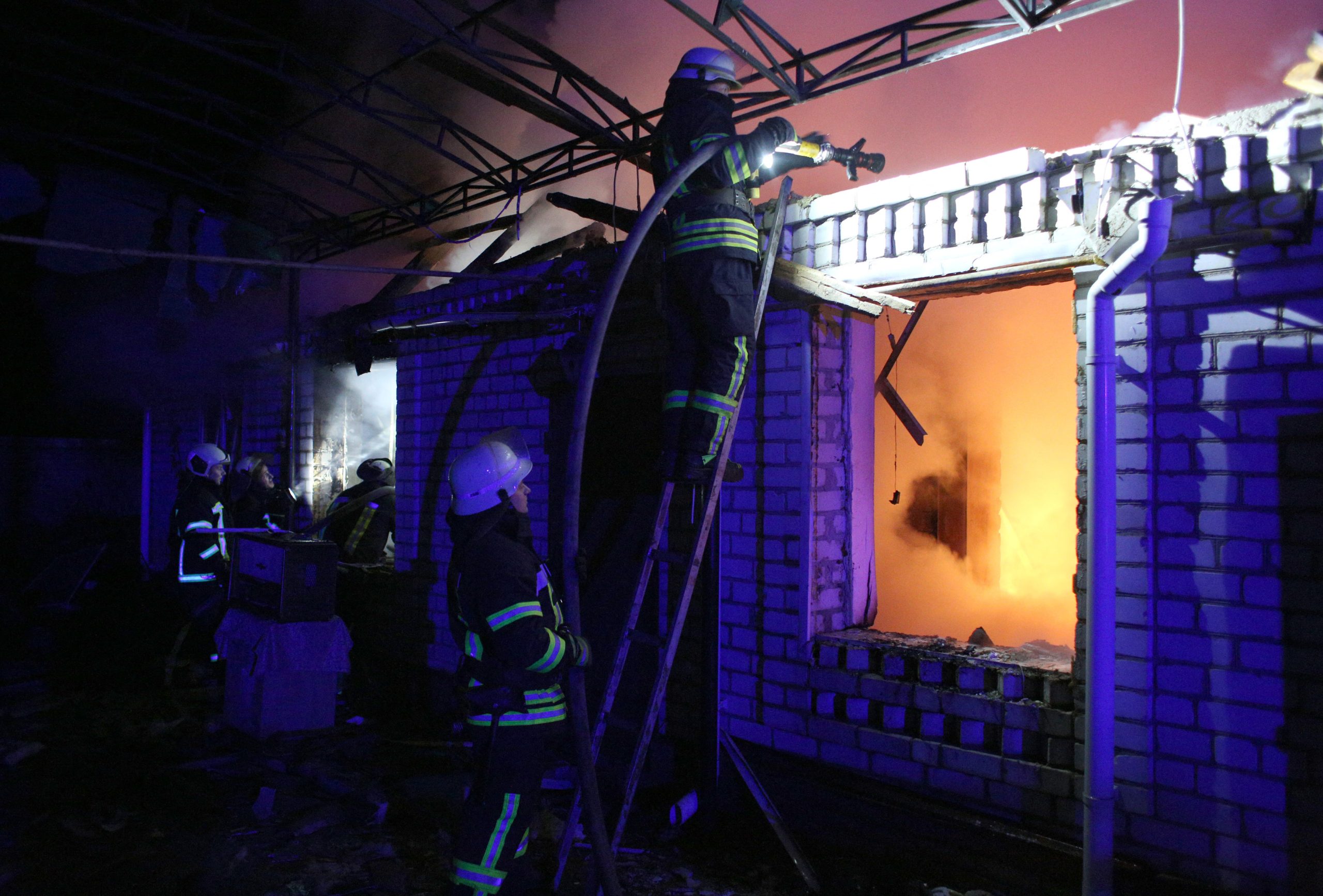 Pompierii sting focul la o casă din Muratovo, din regiunea Lugansk, pe 22 februarie 2022. (Sursa foto: profimedia.ro)