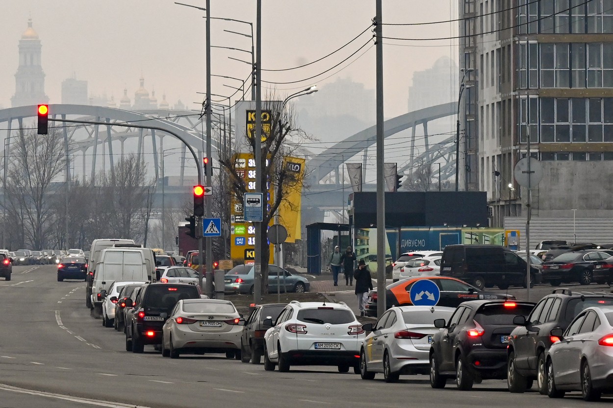 Coadă la o stație de benzină din Kiev, pe 24 februarie 2022. (Sursa foto: profimedia.ro)